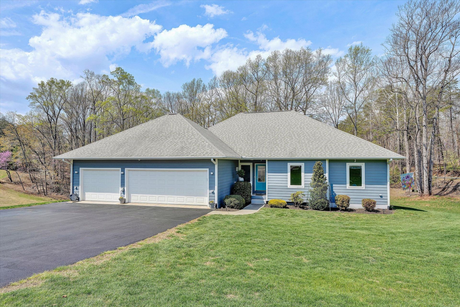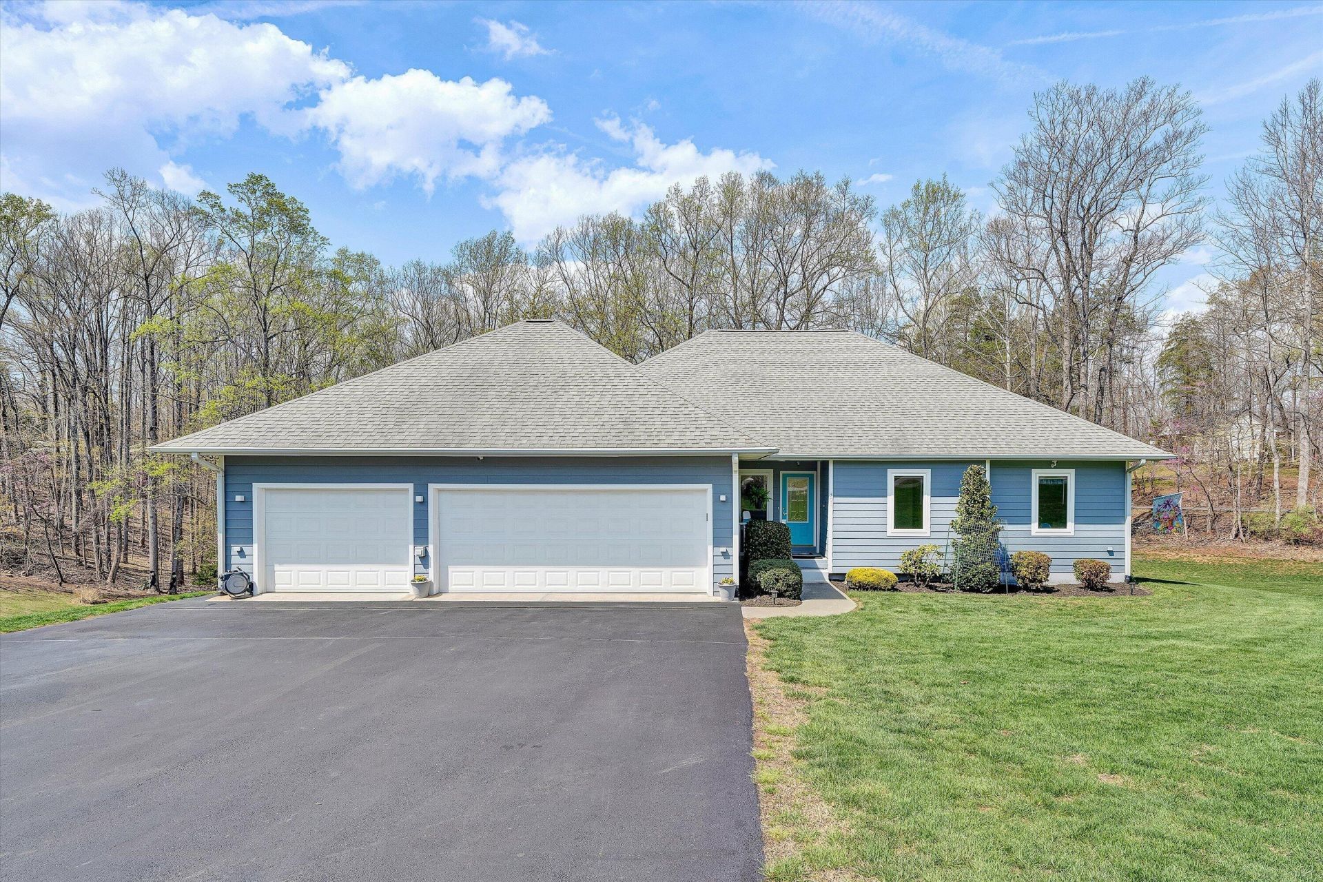 Lovingly maintained SML water access home in a prime location with one-level living, amenities galore and short-term rentable! Only 2 owners, spacious with 4 BRs, 2.5 BAs, thoughtful updates, and an oversized 3-car garage that is both heated and cooled. Situated on over an acre lot, the property also includes an adjoining, cleared 0.91-acre corner lot--bringing the total just over 2 acres. The additional lot alone has an approx. market value of $40,000. Neighborhood amenities include a community pool, pool house with showers, grills, picnic area, pickle ball courts, nearby boat launch and day docks - all for just $950 a year (both lots). The pool and boat storage area are within walking distance. Inside, the bright kitchen features white painted cabinetry, an island,