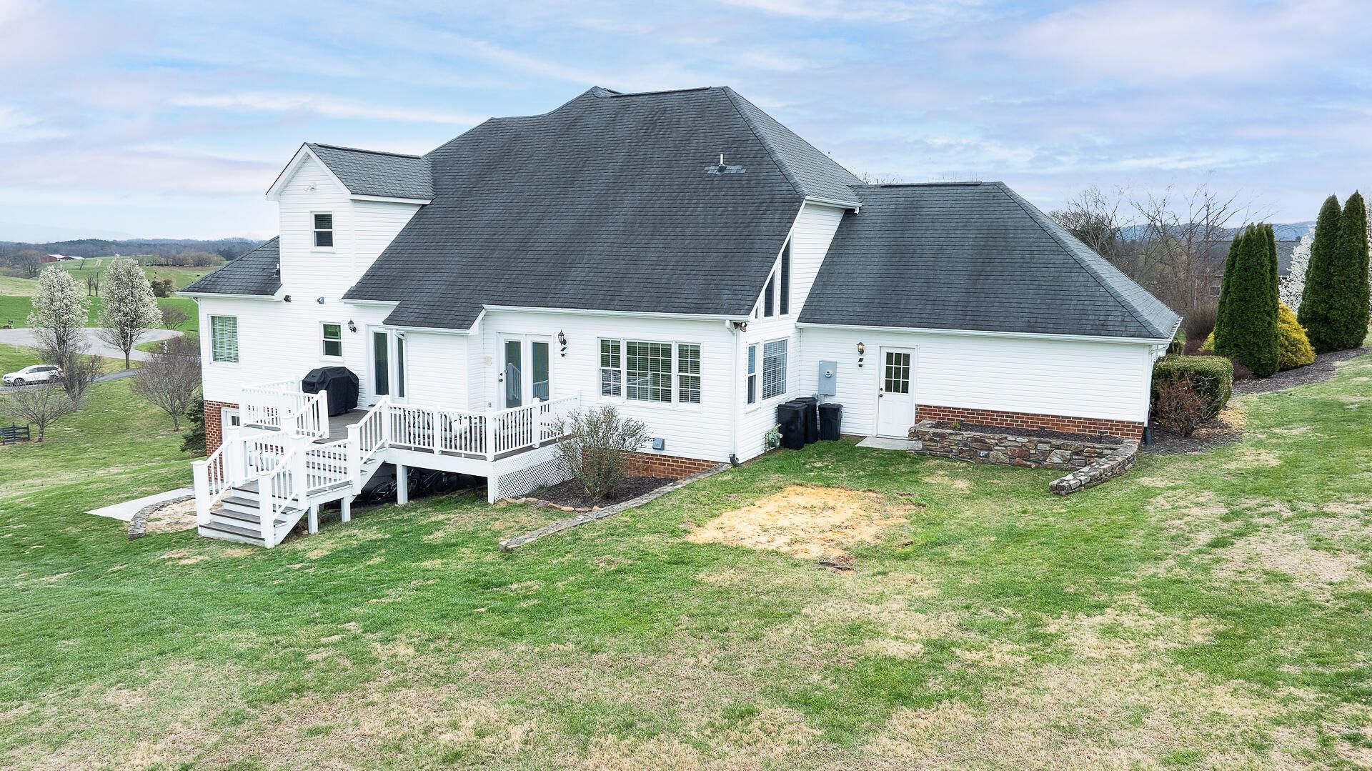 OPEN HOUSE SATURDAY, APRIL 4TH! This Sensational Home sits beautifully on 1 Acre in Botetourt's Sommersby neighborhood w/ stunning views in every direction! It features a Welcoming Front Porch and gleaming hardwoods through the Gracious Entry Foyer, flanked bya formal LR/Office w/Gas FP, Dining RM w/ Bay Window, Vaulted Living RM w/ Gas FP; Cheerful Eat-In Kitchen w/ JennAir downdraft Gas stove in island, Granite counters, Tile backsplash, and a Spacious Entry-Level Owner's Suite, w/ Laundry Hookup in the walk-in closet! 3 Big BRs & 1 BA on Upper level with balcony; Lower Walkout Level offers 2nd Kitchen, 3rd Full BA, Family RM & Flex Rooms for Gym/Office/Guests & Storage. Underground Pet Fence 2-Loops; New AC, Frig & DW, Ceiling Fans.
